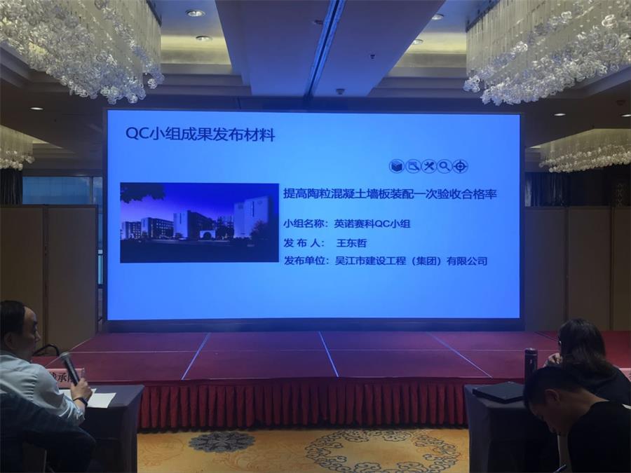 4月22日到24日我司技術(shù)中心相關(guān)人員在南京曙光國際大酒店參加了為期三天的“2019年江蘇省工程建設(shè)QC小組活動(dòng)成果交流發(fā)布咨詢活動(dòng)”。本次活動(dòng)總發(fā)布697篇成果,我司課題為“提高陶粒混凝土墻板裝配施工一次驗(yàn)收合格率”以小組第三、全組第六的成績獲得省一等獎(jiǎng)。