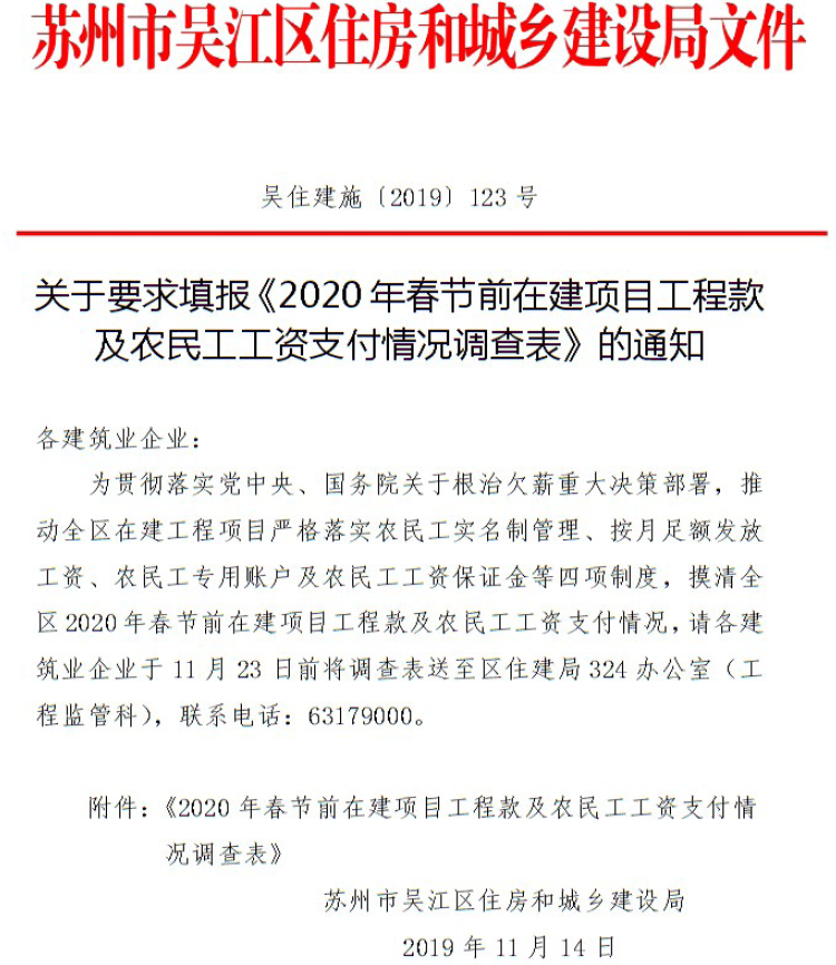 附件:《關(guān)于要求填報《2020年春節(jié)前在建項目工程款及農(nóng)民工工資支付情況調(diào)查表》的通知> <點我下載>