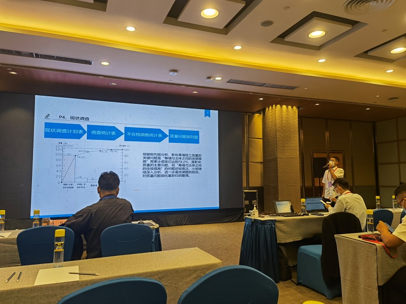 《提高玻璃幕墻驗(yàn)收一次合格率》以金瀾機(jī)械廠房項(xiàng)目為研究對(duì)象,以提高玻璃幕墻質(zhì)量為活動(dòng)課題,通過(guò)從人、機(jī)、料、法、環(huán)、測(cè)等六個(gè)方面分析,運(yùn)用多種統(tǒng)計(jì)方法,總結(jié)出改變埋件的固定方式與及增加勞動(dòng)力,加強(qiáng)方案的交底等方法,提升玻璃幕墻的施工質(zhì)量。小組成員在公司企業(yè)技術(shù)中心指導(dǎo)下,專注研討,克服困難,通過(guò)了線上視頻會(huì)議初賽和本次現(xiàn)場(chǎng)發(fā)布復(fù)賽,終于成功將公司質(zhì)量管理工作的成果展現(xiàn)在全國(guó)同行專業(yè)大會(huì)。