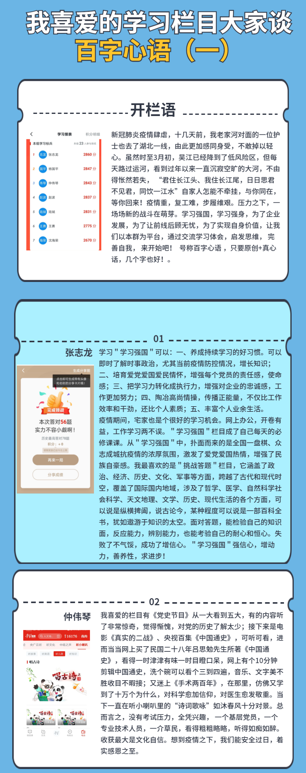 我喜愛的學(xué)習(xí)欄目大家談 ——百字心語(一)